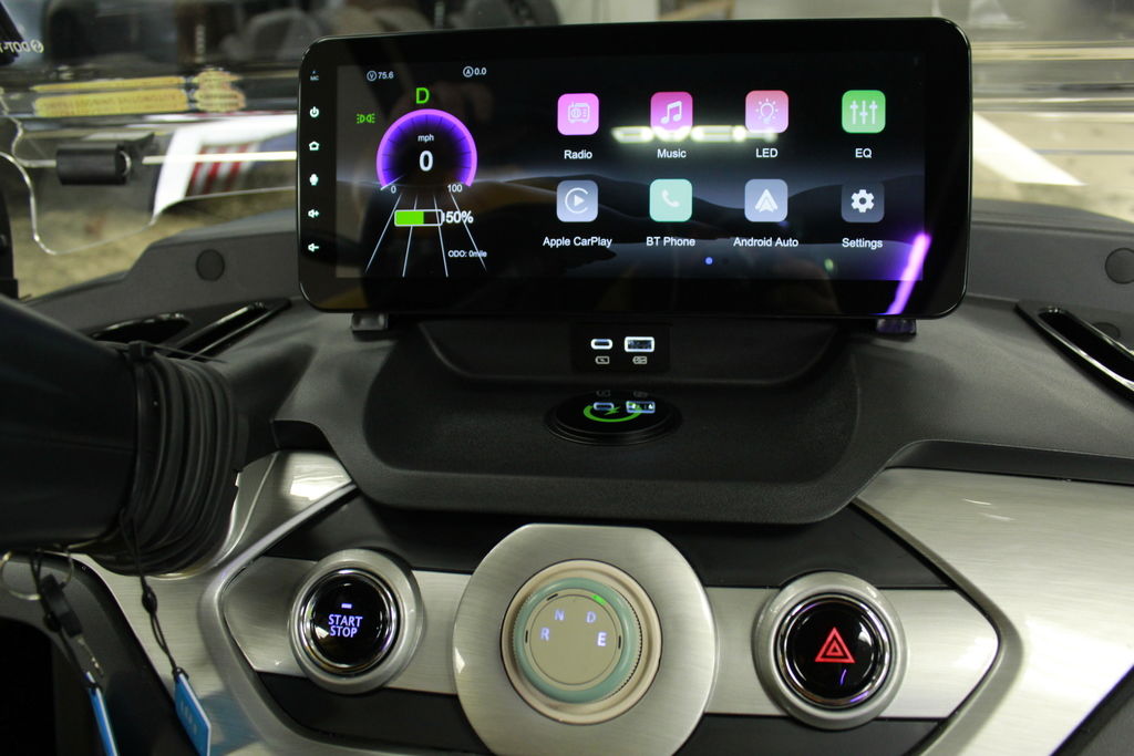 - 12.3-inch touch display showcases ultra-clear functions such as battery level, speed, MP3, MP4, reverse camera, CarPlay, Android Auto, and more. It also uses anti-glare technology, ensuring clear visibility under all sunlight conditions during driving.