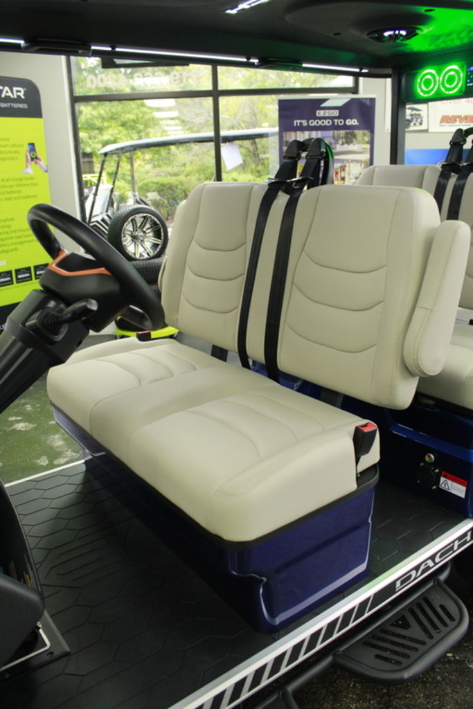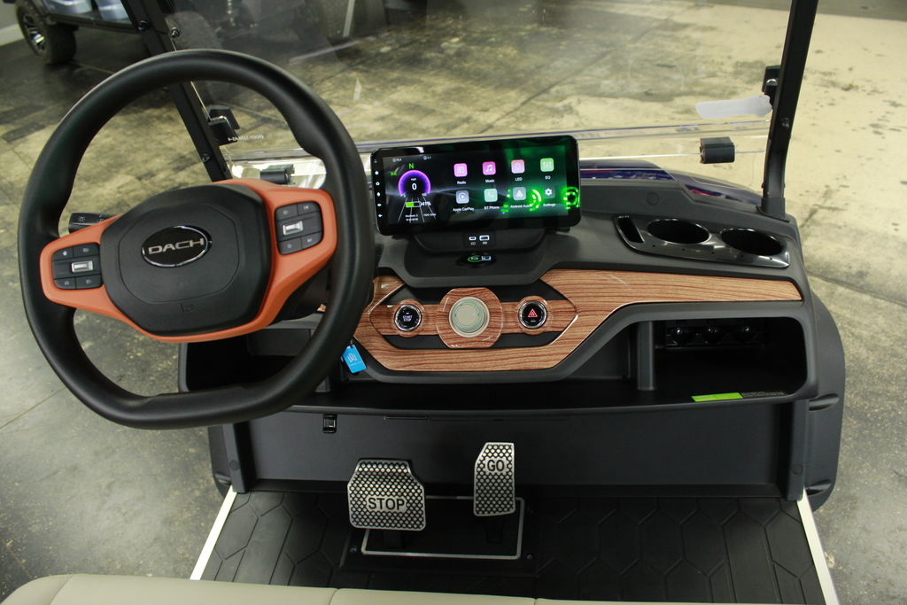 - Dach Apollo model is the first in the industry to incorporate cruise control functionality into a golf cart. The cruise control function greatly enhances comfort and convenience when driving a golf cart. By automatically maintaining a set speed, the driver doesn’t need to constantly press the accelerator, making long drives or longer routes much easier, especially on golf courses or community roads. Additionally, this feature helps improve stability and safety, reducing driver fatigue and ensuring a smoother driving experience.