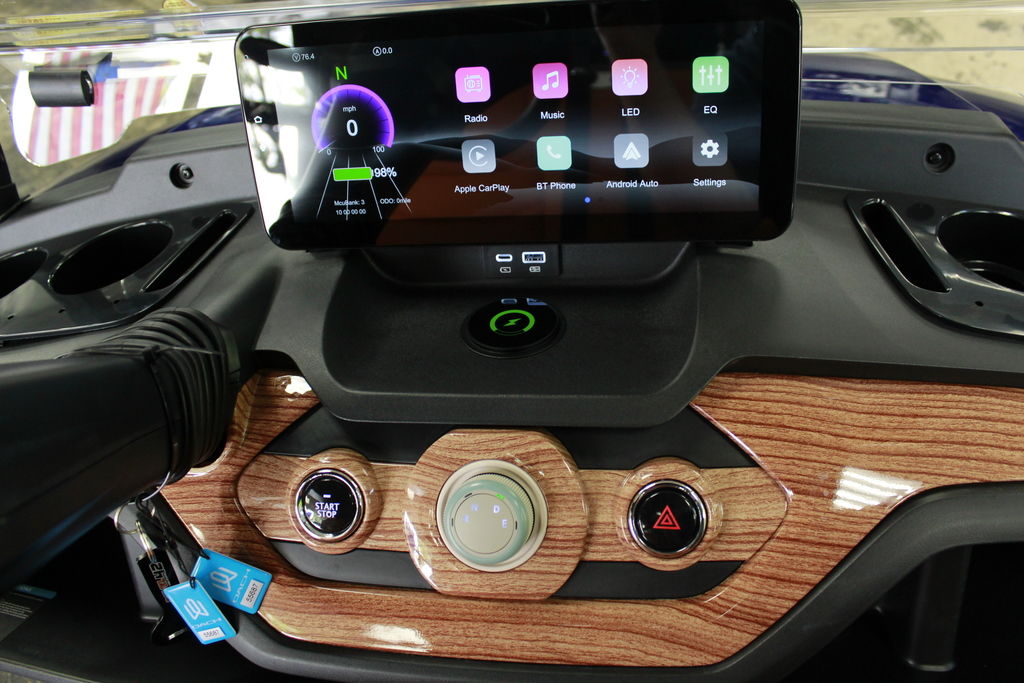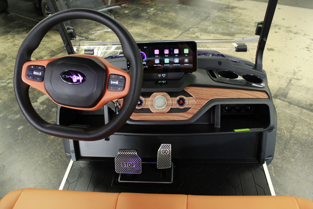 - Dach Apollo model is the first in the industry to incorporate cruise control functionality into a golf cart. The cruise control function greatly enhances comfort and convenience when driving a golf cart. By automatically maintaining a set speed, the driver doesn’t need to constantly press the accelerator, making long drives or longer routes much easier, especially on golf courses or community roads. Additionally, this feature helps improve stability and safety, reducing driver fatigue and ensuring a smoother driving experience.