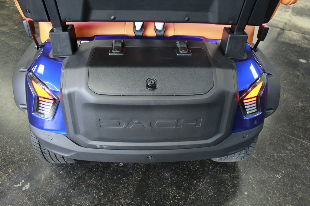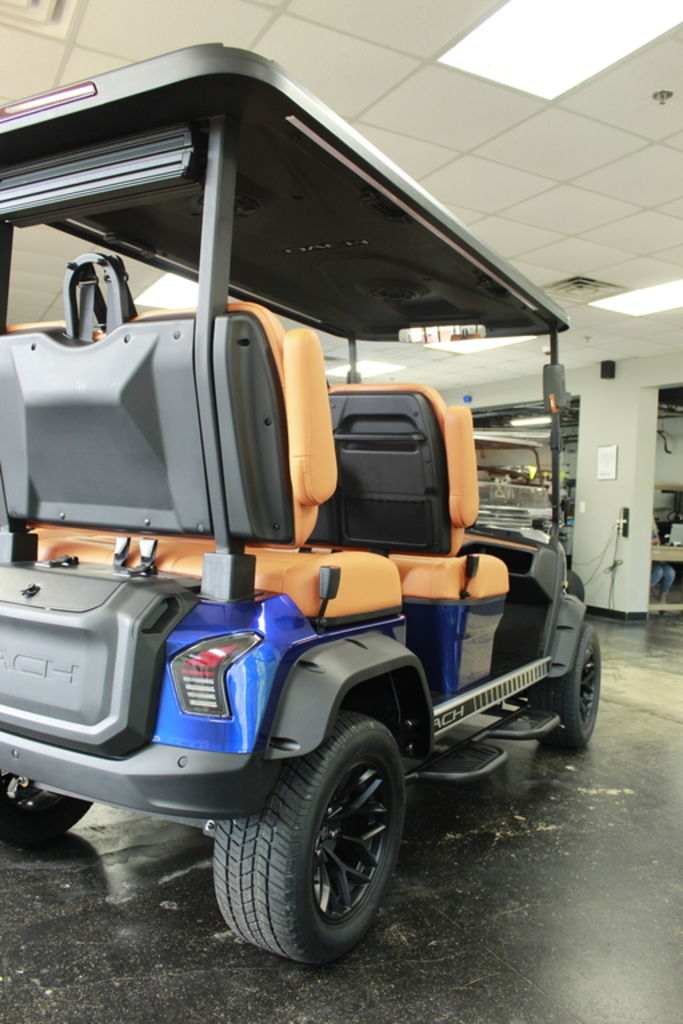 - The Dach golf cart features a Monocoque Frame design, combining body and automotive level frame into one structure for reduced weight and increased rigidity. This design enhances battery range, energy efficiency, and interior space, resulting in a more comfortable ride. Compared to traditional body-on-frame models, it offers better handling and comfort, making it suitable for golf courses, communities, and recreational use, ensuring a smoother and safer driving experience.