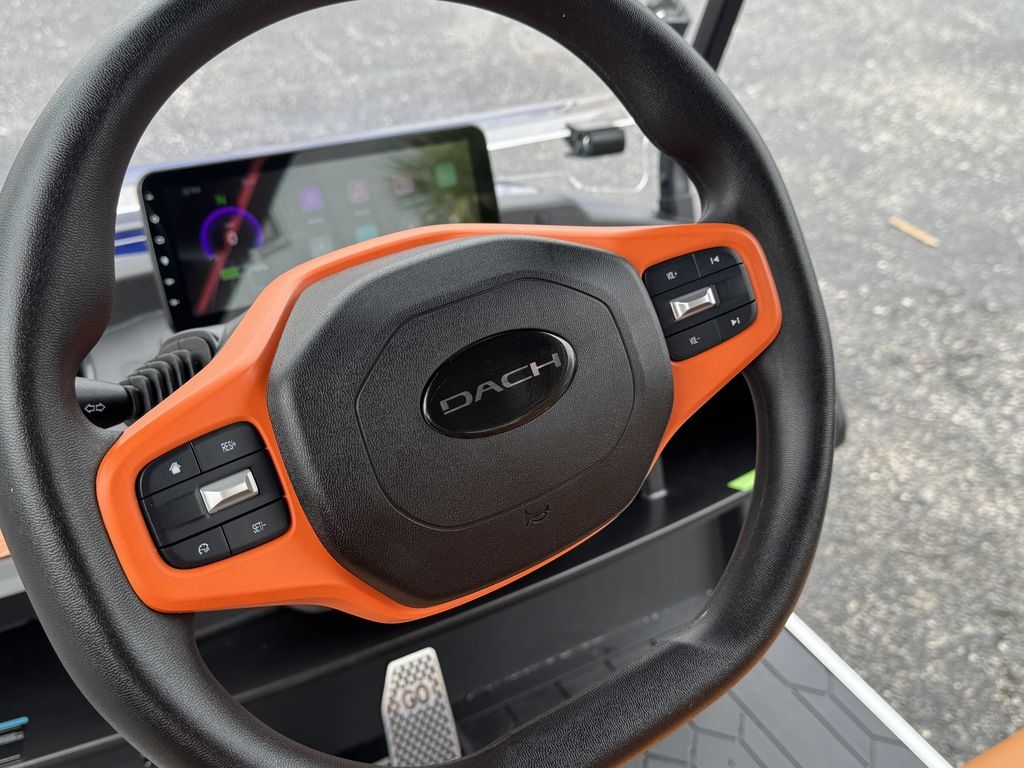 - Dach Apollo model is the first in the industry to incorporate cruise control functionality into a golf cart. The cruise control function greatly enhances comfort and convenience when driving a golf cart. By automatically maintaining a set speed, the driver doesn’t need to constantly press the accelerator, making long drives or longer routes much easier, especially on golf courses or community roads. Additionally, this feature helps improve stability and safety, reducing driver fatigue and ensuring a smoother driving experience.