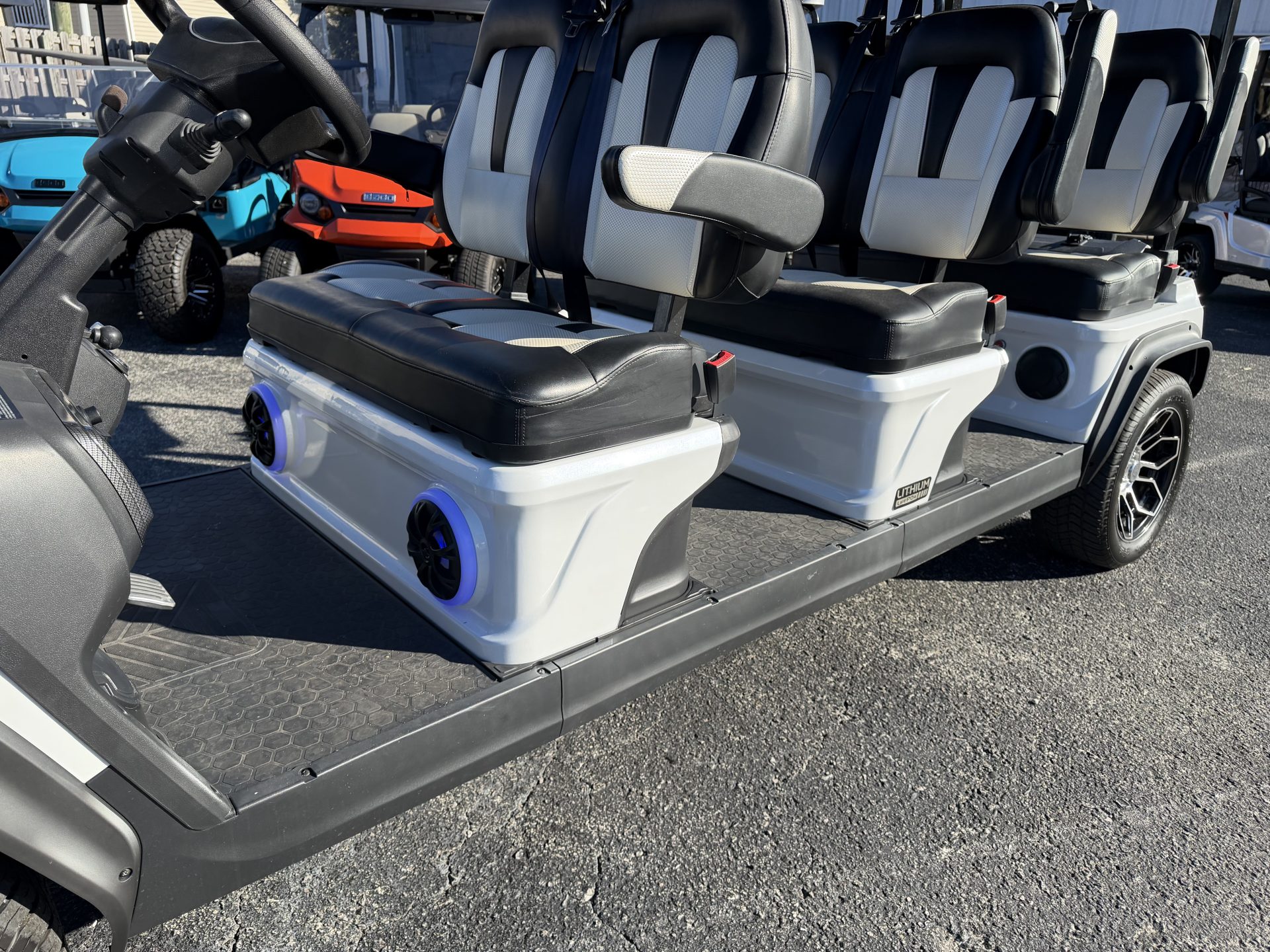 The Ranger 6 PLUS redefines spacious luxury in golf carts, effortlessly seating six with every passenger facing forward. Now featuring Apple CarPlay and Android Auto compatibility, along with under-seat illuminated speakers, it marries elite features with expanded capacity. Experience unparalleled comfort and utility with the Ranger 6 PLUS, the ideal fusion of style and function.