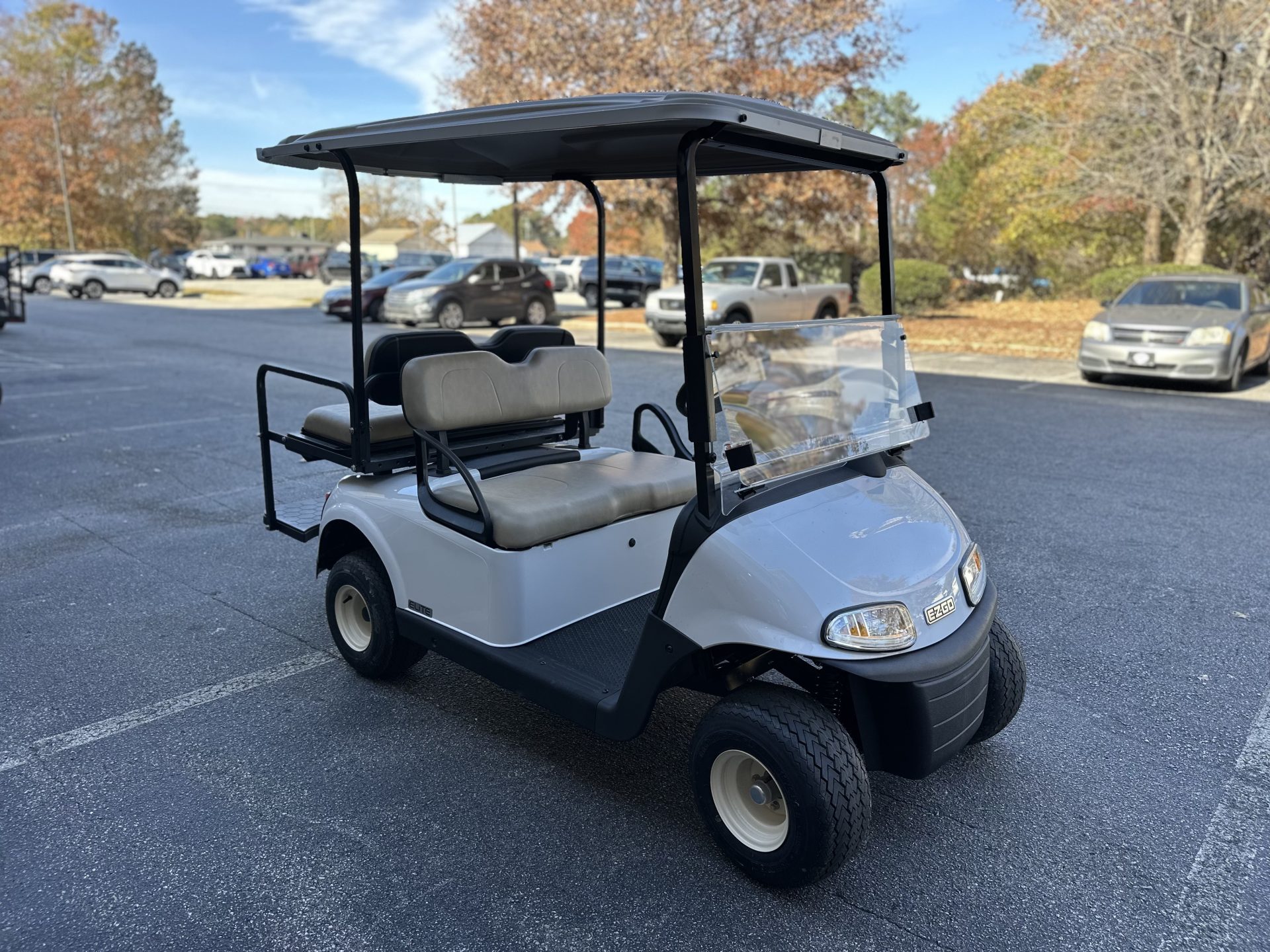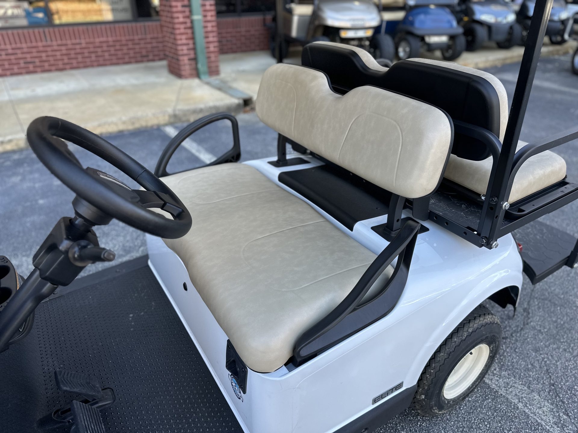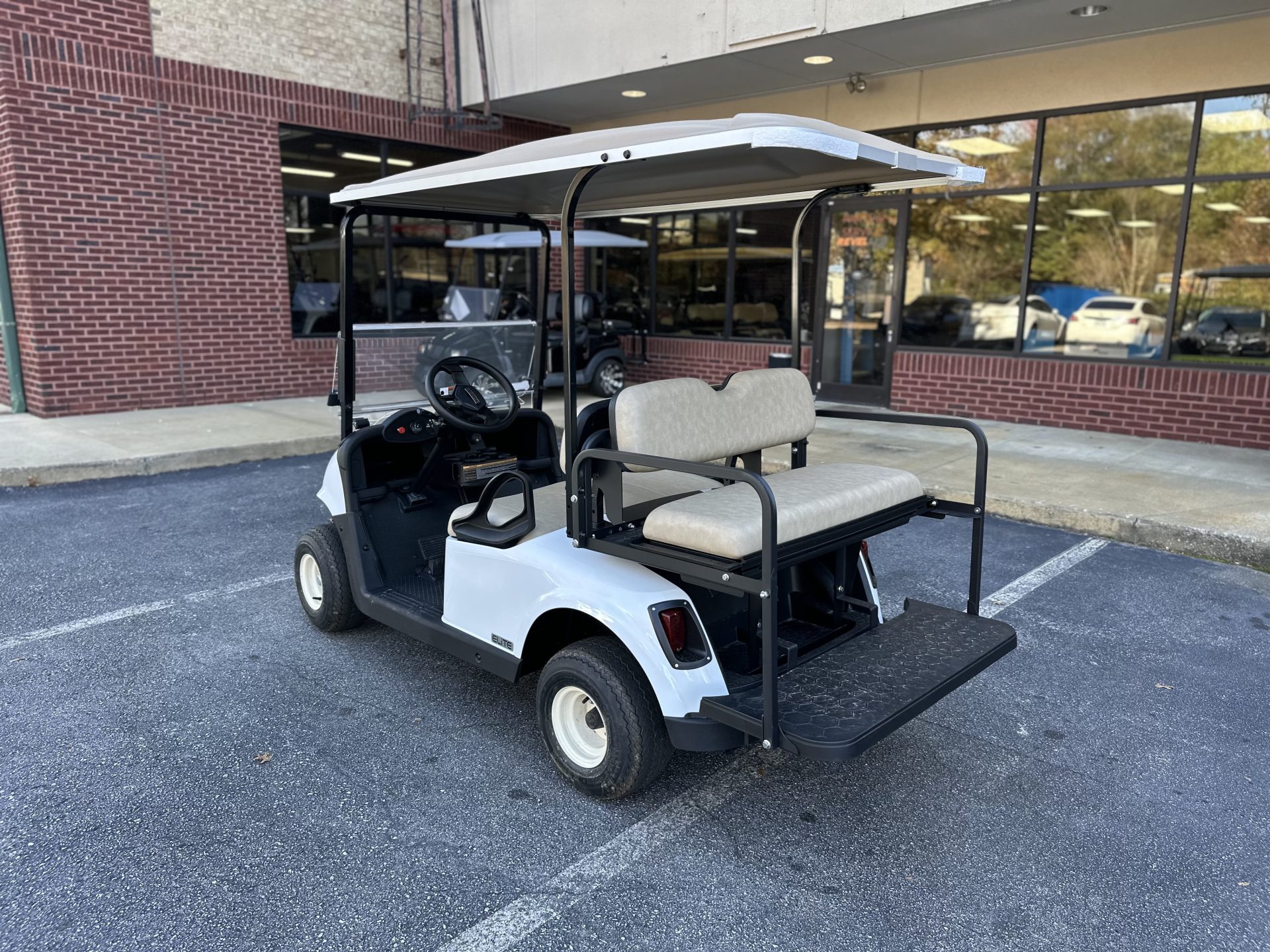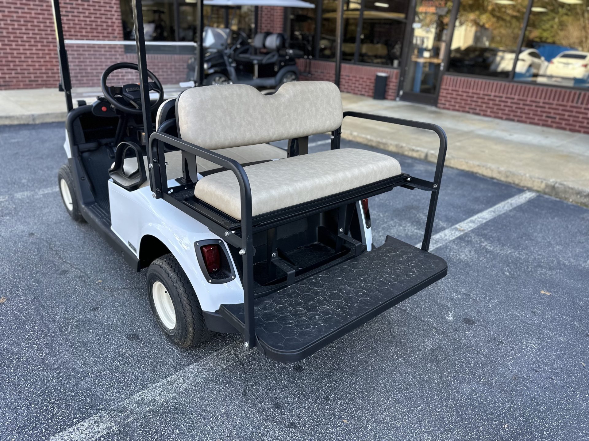 This 2021 E-Z-GO RXV in white has a bright, clean look that fits perfectly for riding around the neighborhood. Paired with tan seats, it has that classic, easygoing style people really like. As a Certified Pre-Owned RXV with a lithium battery, it’s a great choice for someone who wants something reliable to enjoy with family — evening rides, quick trips around the neighborhood, or just having a fun way to get around. It’s a solid, comfortable cart that makes everyday cruising simple and enjoyable.
