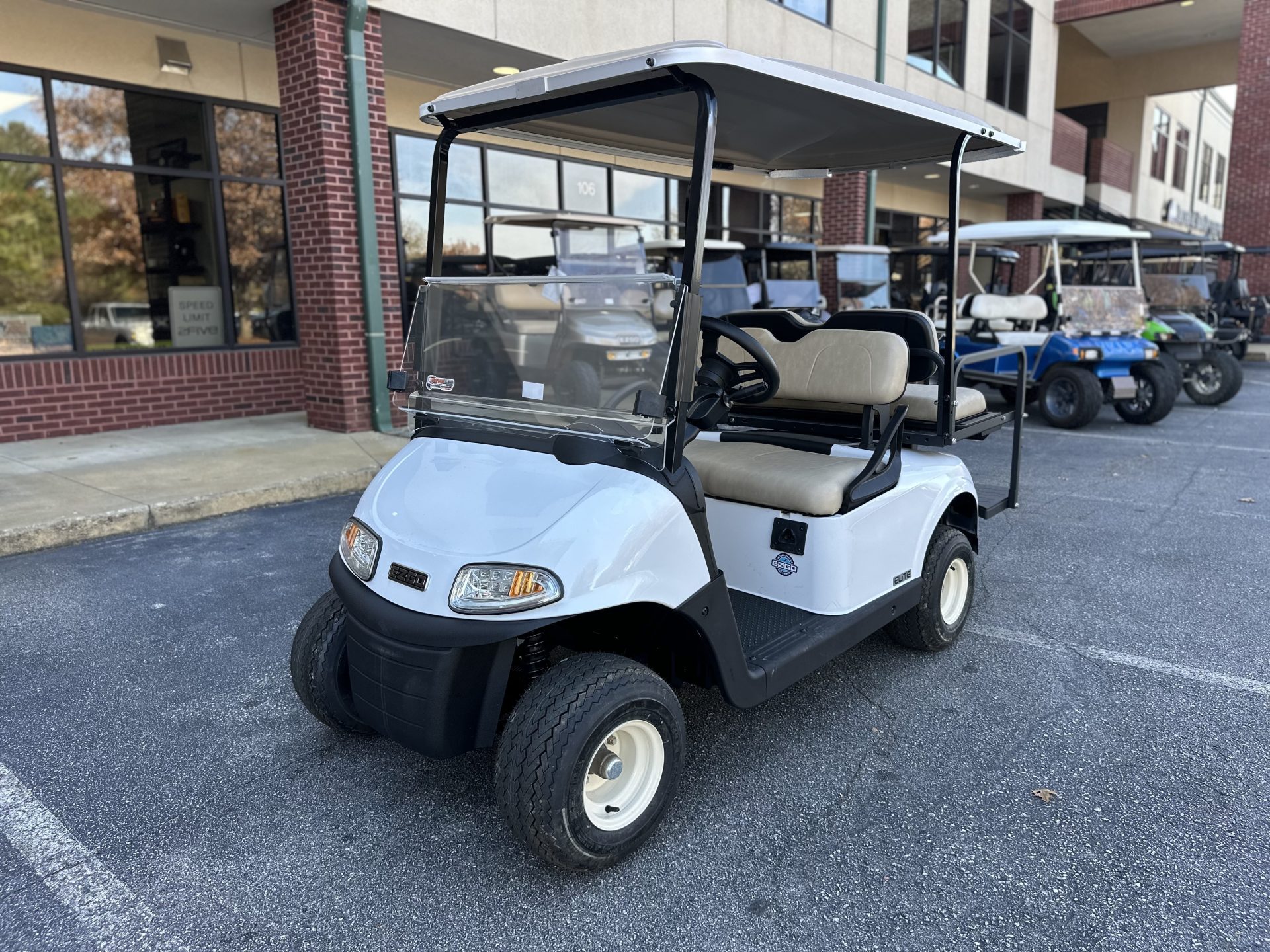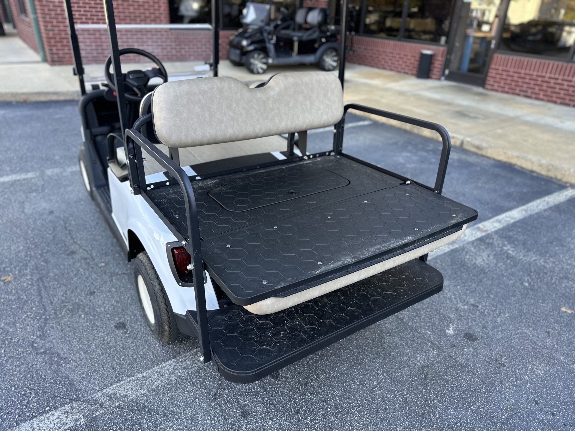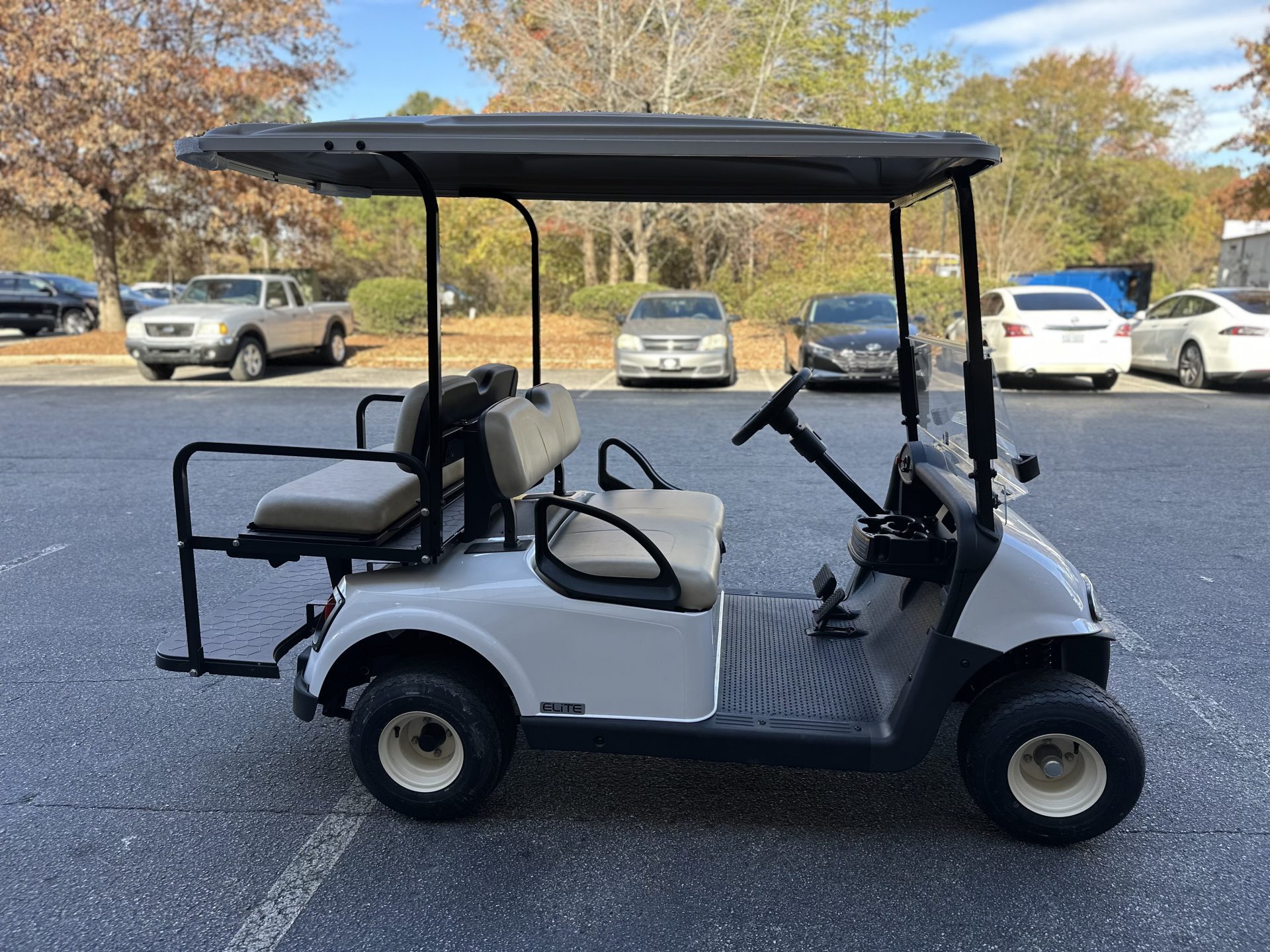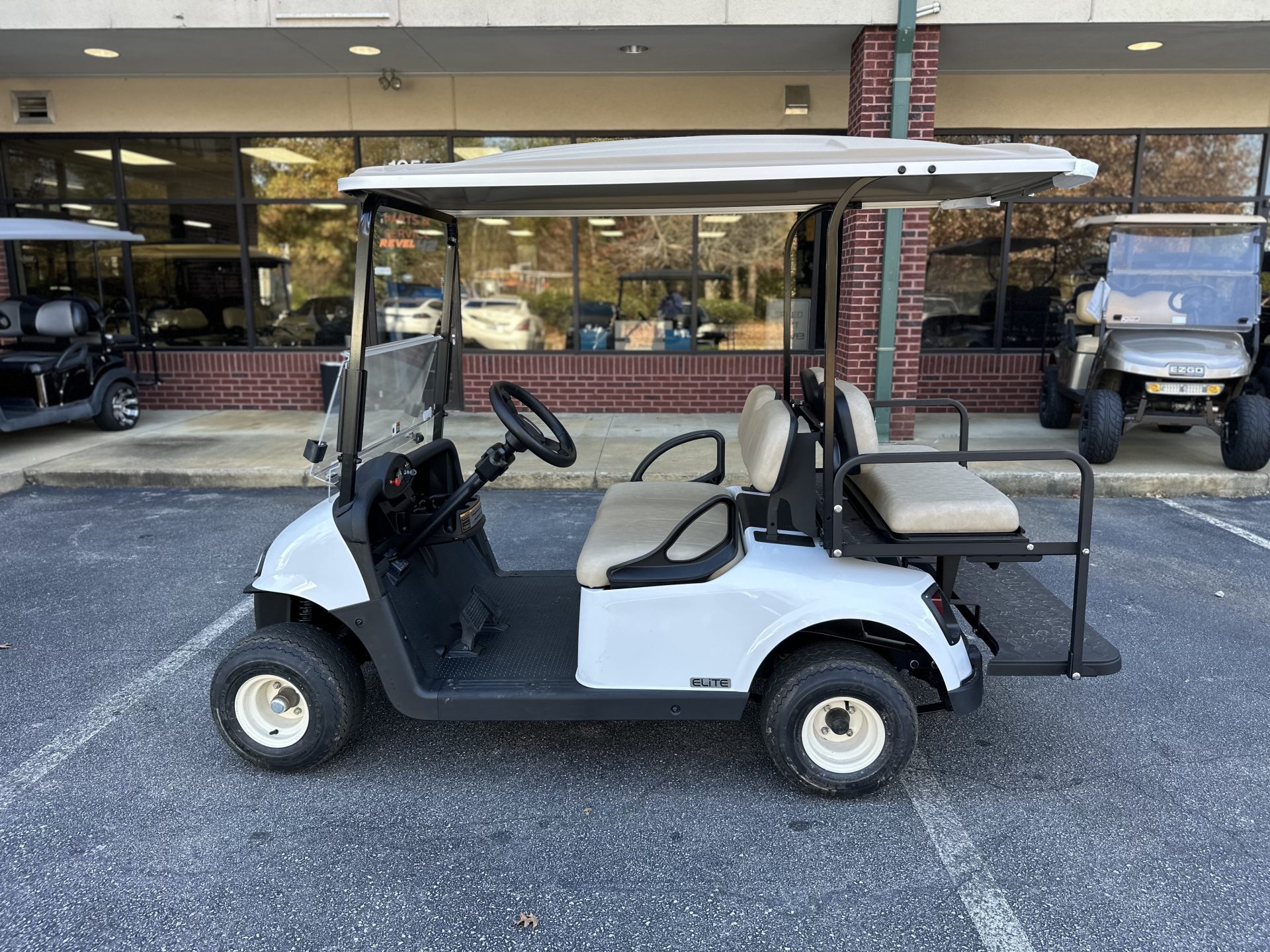 This 2021 E-Z-GO RXV in white has a bright, clean look that fits perfectly for riding around the neighborhood. Paired with tan seats, it has that classic, easygoing style people really like. As a Certified Pre-Owned RXV with a lithium battery, it’s a great choice for someone who wants something reliable to enjoy with family — evening rides, quick trips around the neighborhood, or just having a fun way to get around. It’s a solid, comfortable cart that makes everyday cruising simple and enjoyable.
