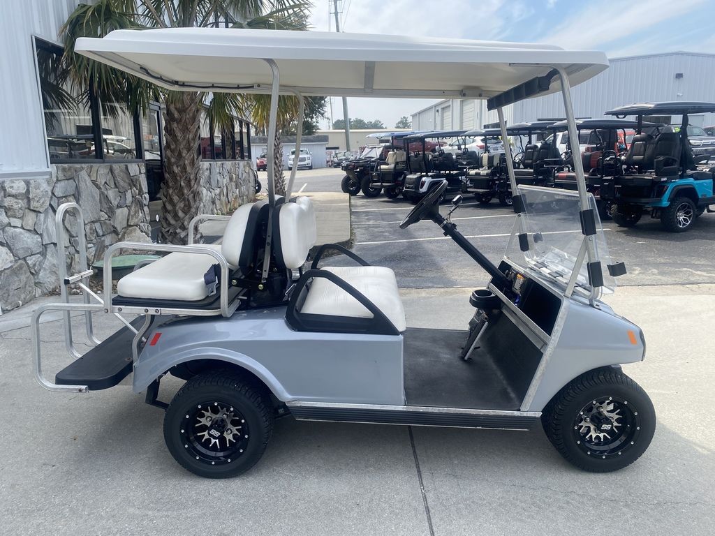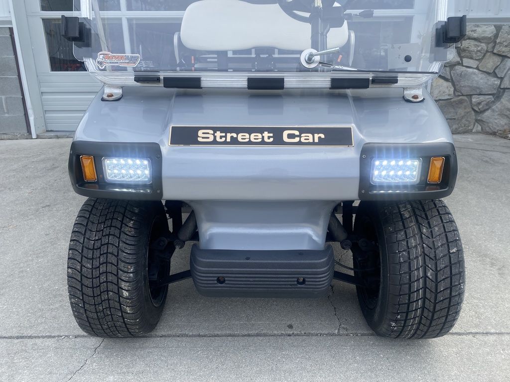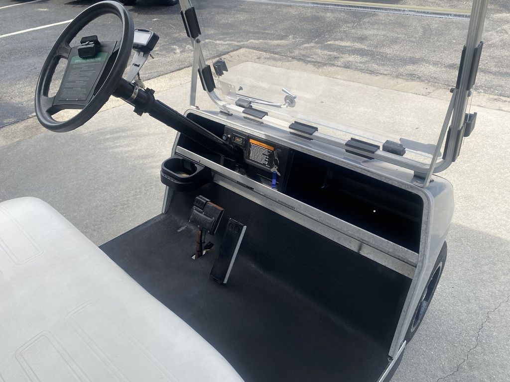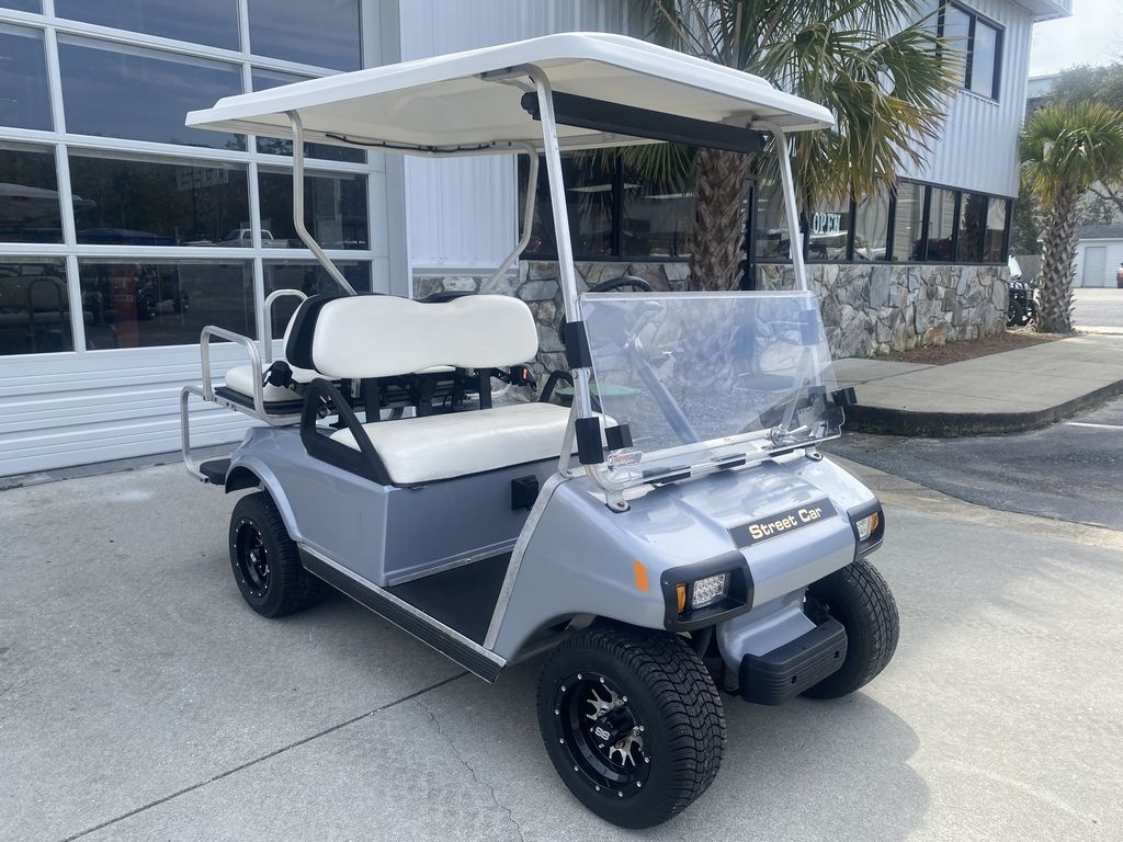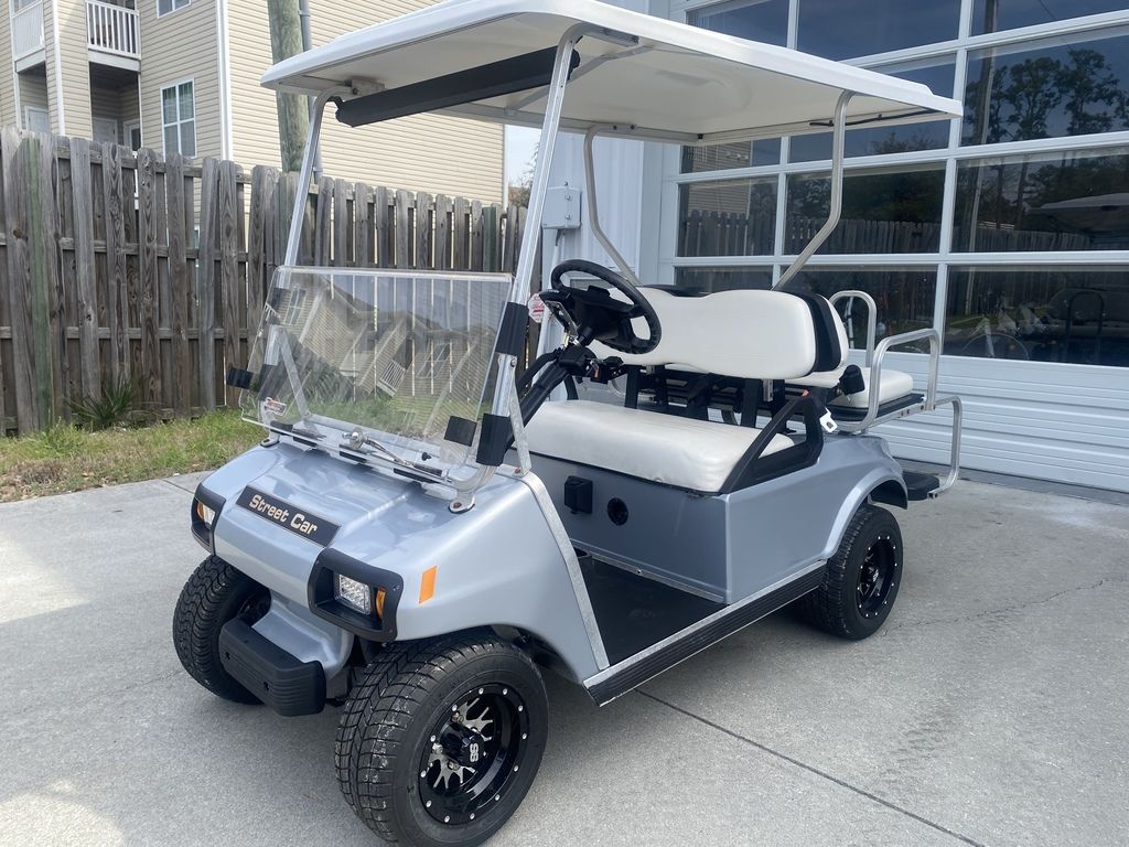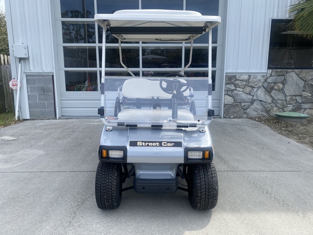 Beneath its sleek silver exterior lies a robust electric system powered by deep cycle batteries, ensuring you have the range and reliability to enjoy every journey. Whether you’re cruising along the fairway or navigating a bustling community, this golf cart promises a ride that’s both efficient and environmentally friendly.