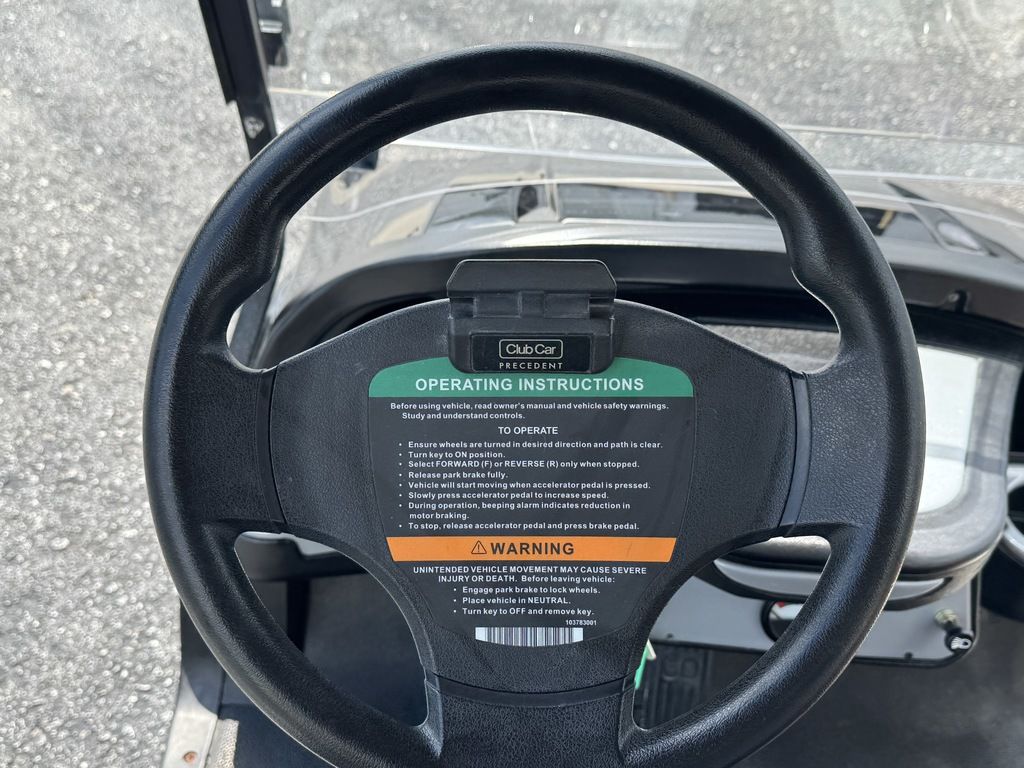 Underneath its sleek exterior, the Precedent is powered by an efficient electric motor utilizing deep cycle batteries, delivering whisper-quiet operation and eco-friendly performance. Whether you’re navigating the fairways or making your way around the neighborhood, this golf cart offers a seamless ride with minimal maintenance required.