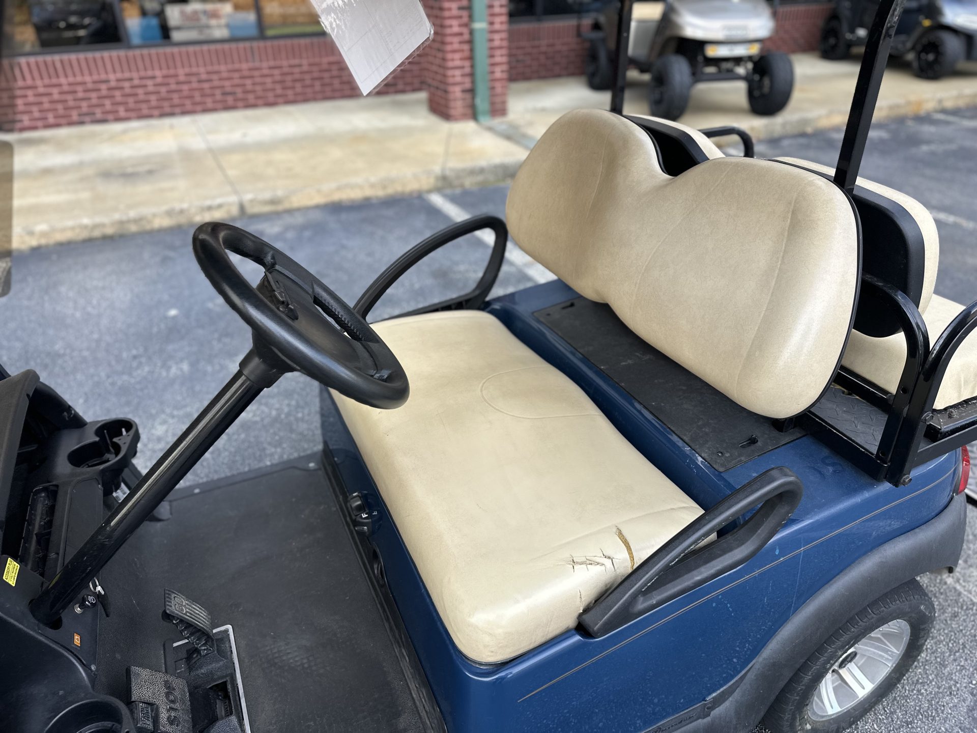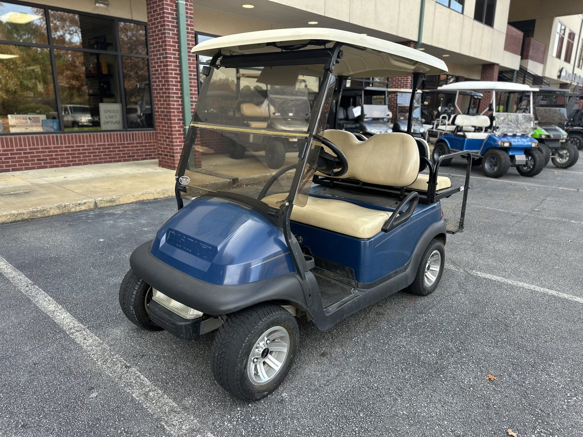 This 2013 Club Car Precedent has a classic, straightforward look with a deep blue body and tan seats that give it a comfortable, traditional feel. The matching tan roof ties everything together, and the Precedent body style has that smooth, rounded design people really like for personal use. It’s a great everyday cart for riding around neighborhoods, campgrounds, or the golf course, with a simple color combo that always looks good.
