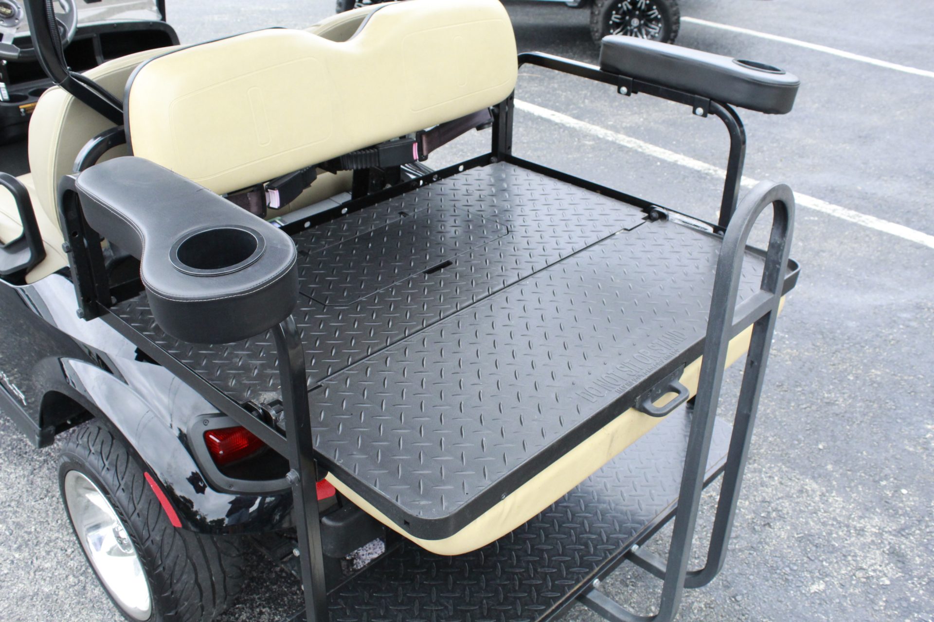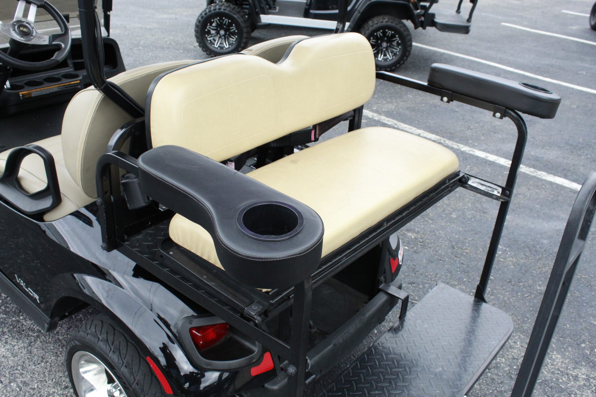 The 2021 E-Z-GO Valor boasts a generous seating capacity, accommodating up to four passengers comfortably. The layout features two plush seats at the front for the driver and a passenger, while the rear seat flips up to provide additional cargo space when needed. Whether you’re carting around friends, family, or gear, this golf cart adapts to your needs with ease.