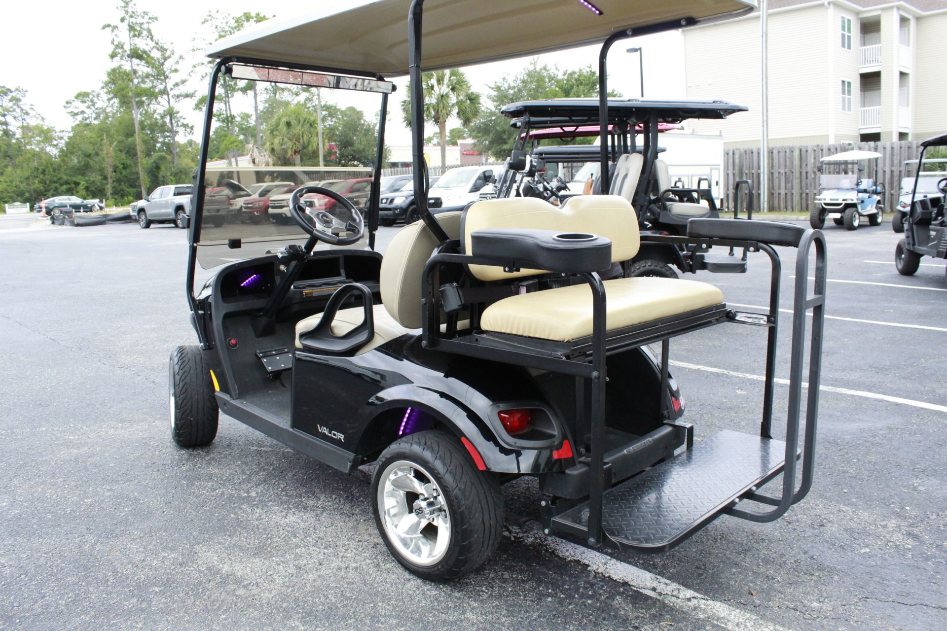 Introducing the 2021 E-Z-GO Valor, where practicality meets fun in an all-electric package. This used golf cart is not just for the golf course—it’s a versatile vehicle perfect for neighborhood cruising, campground adventures, or running errands in style.